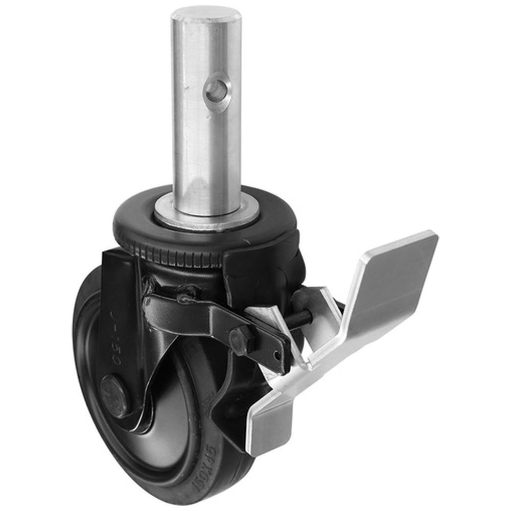 シシク 差し込み式キャスタ ブラックライン ゴム車輪付 ペダルストッパー 車輪径150mm BKWSCF150