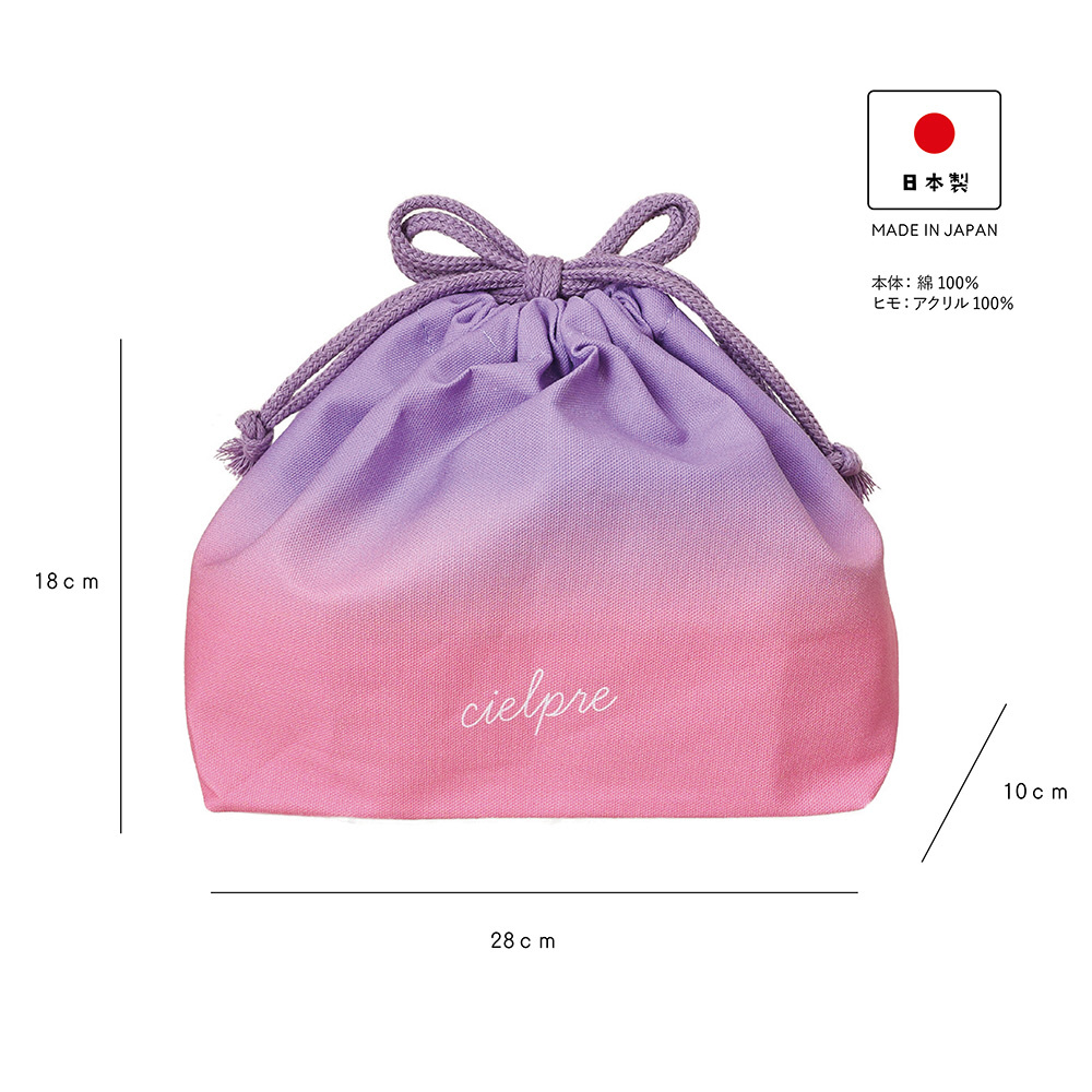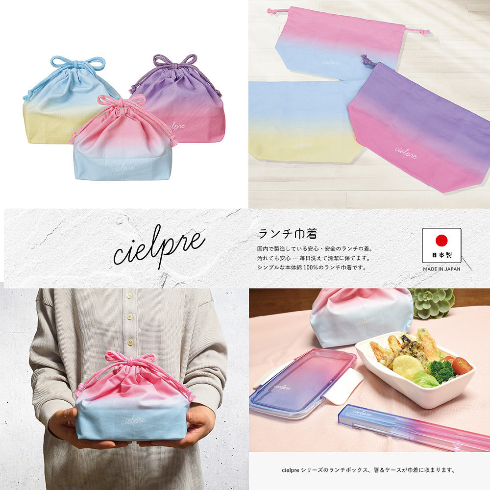 Cielpreシリーズのランチボックス、箸&ケースが巾着に収まります。