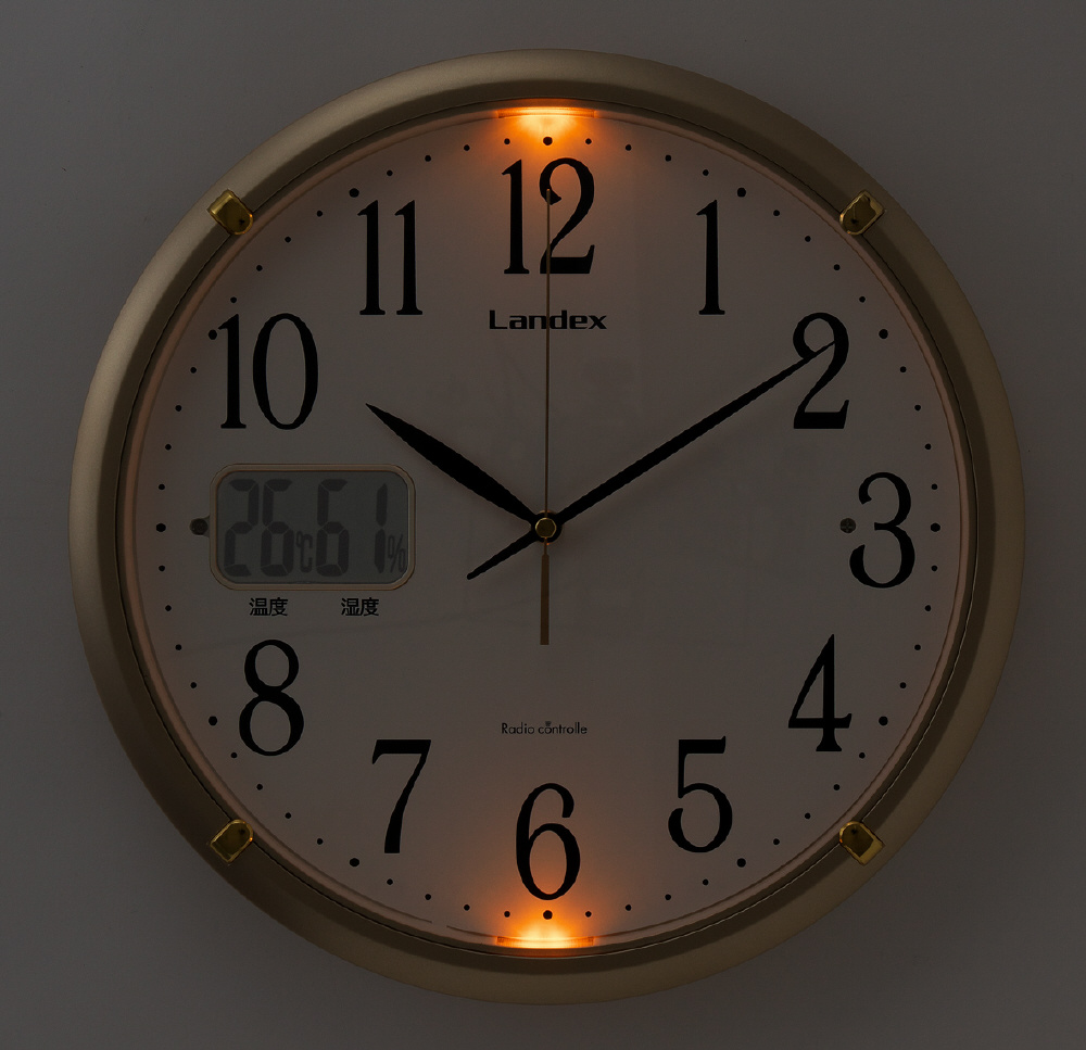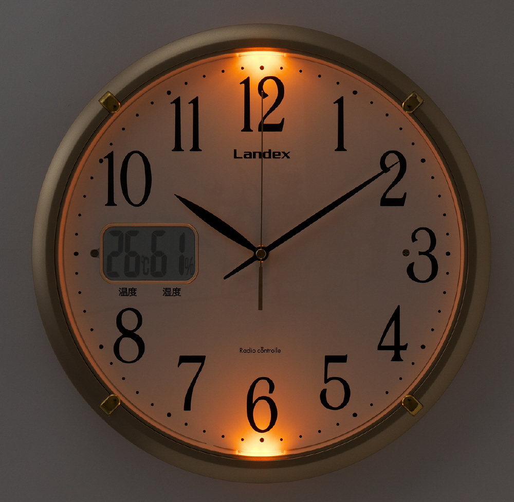 ランデックス(Landex) 掛け時計 電波時計 ゴールド 32.5cm ソクテルEX アナログ 温度 湿度 ライト付き 夜間秒針停止 自動点灯 YW9150GD
