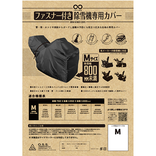 IMA95403 INFIMO 除雪機ロータリータイプ汎用カバー ファスナー付き(Mサイズ) カラー:ブラック ブレード幅800mm未満