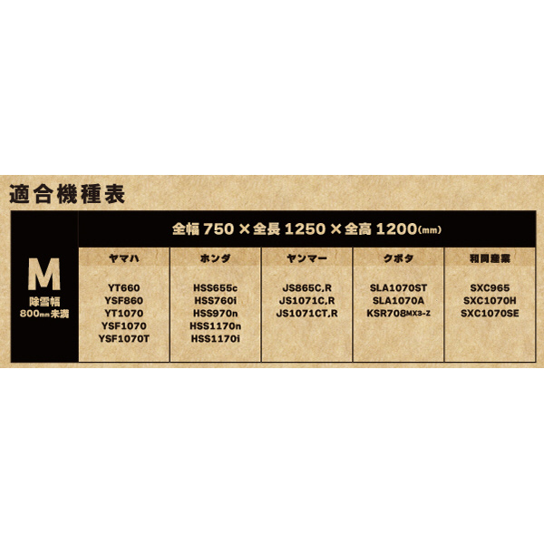 ブレード幅800mm未満のロータリータイプの除雪機に適合します。
