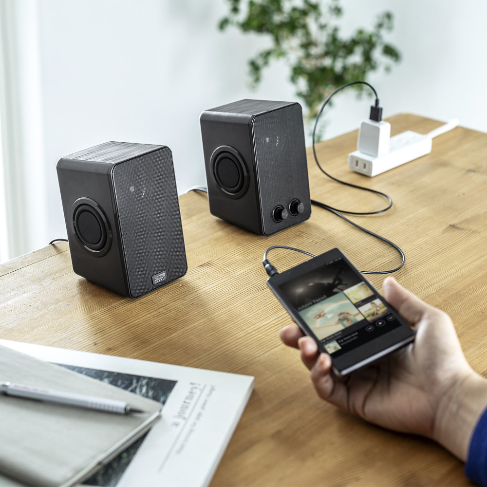 MM-SPL22UBK PCスピーカー USB-A / 3.5mm接続 [USB電源]