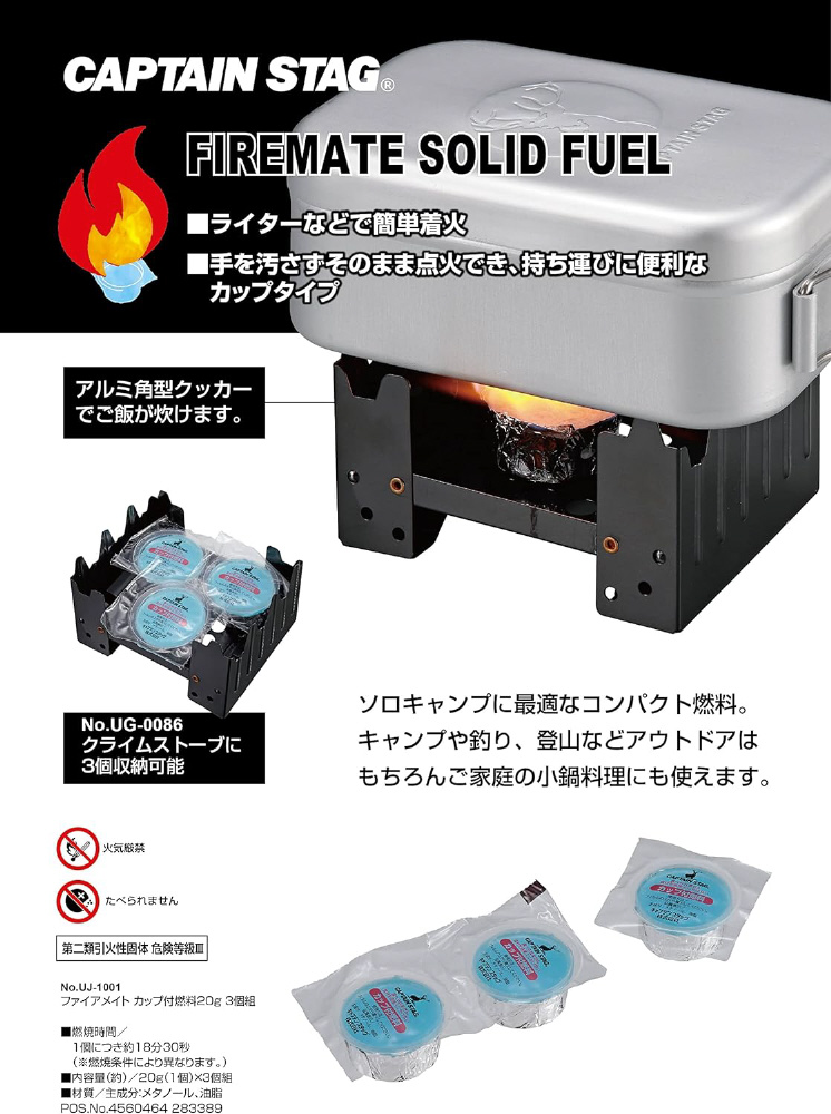 内容量: (約)20g(1個)×3個組、燃焼時間: 1個につき約18分30秒(※燃焼条件により異なります)