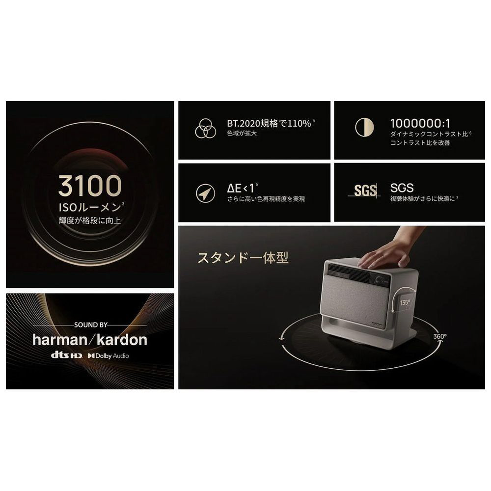 プロジェクターは水平方向に 360°、垂直方向に 135° の調整が可能で、壁、天井、移したい場所に簡単に投影してカスタマイズされた大画面体験を楽しめます。