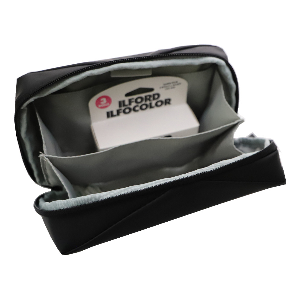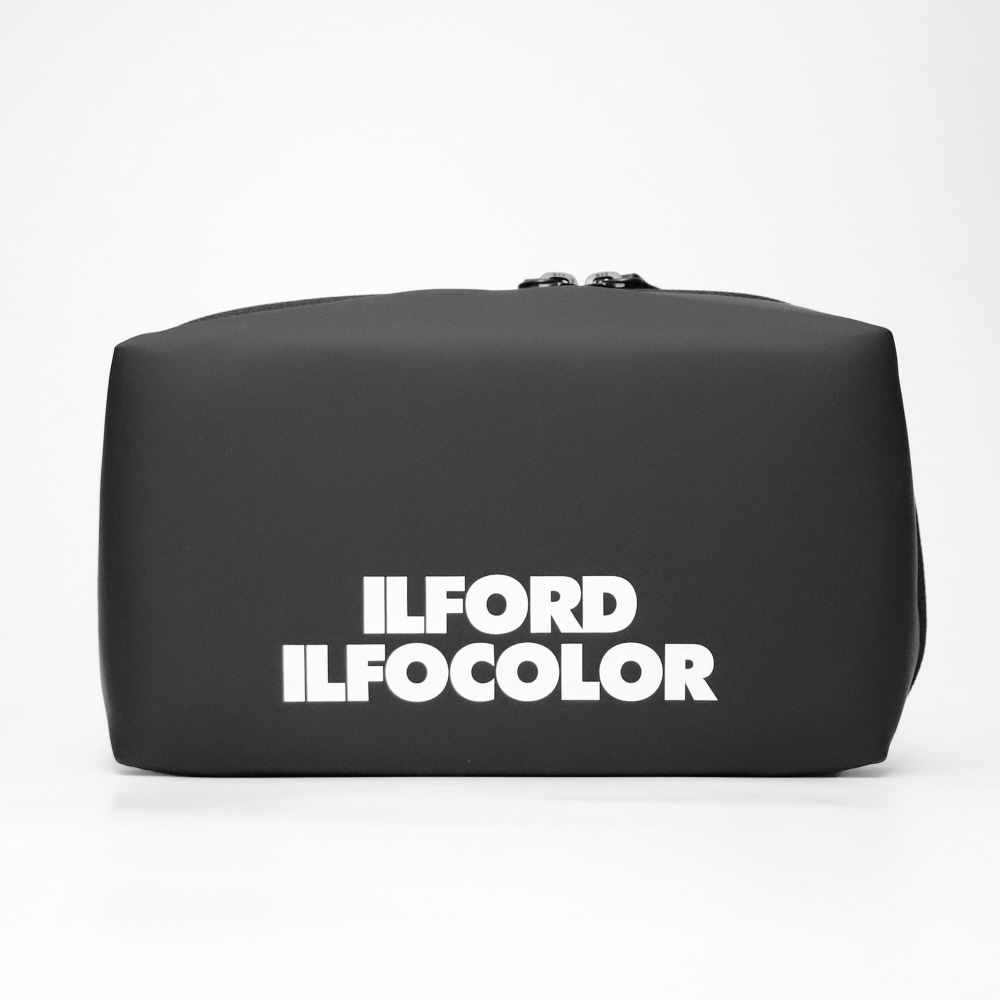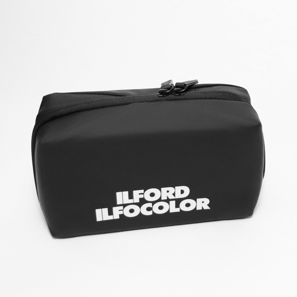 フィルムなどの収納に便利なILFORDロゴ入りブラックカラーのポーチです。