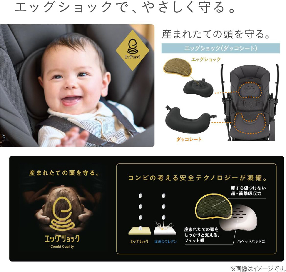 ●ダッコシート:吸収速乾素材を採用したインナークッションが、ムレを防ぎ、赤ちゃんの快適な姿勢を保ちます。