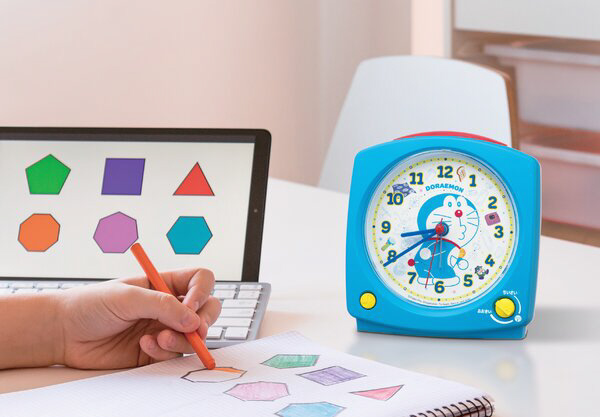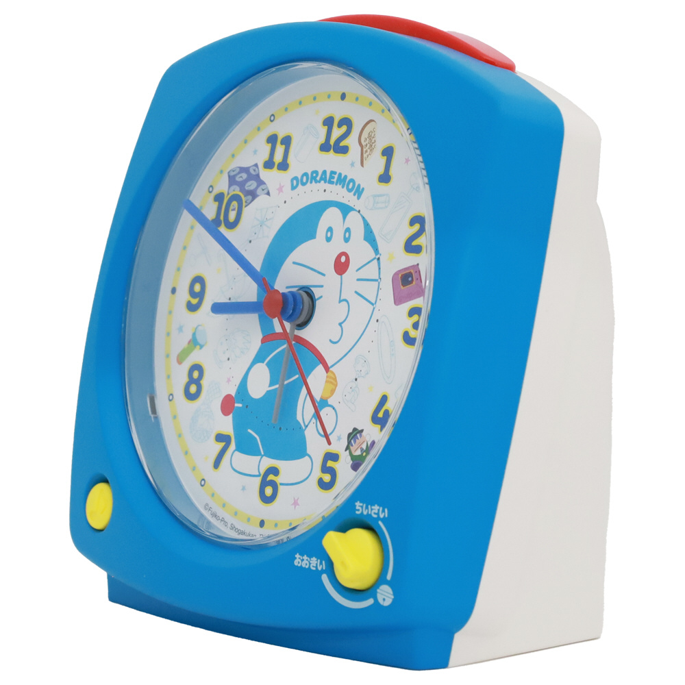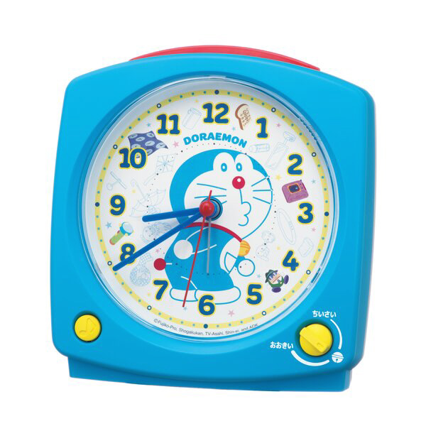 ドラえもんカラーがかわいい目ざまし時計。入園・入学・新生活へのお祝いにおすすめです。