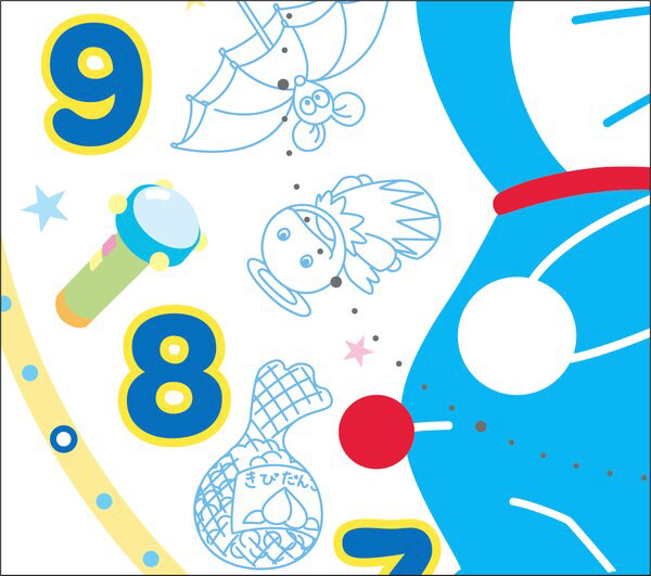 ドラえもんを中心に大きく配し、背景にはひみつ道具を散りばめた楽しいデザイン??です。