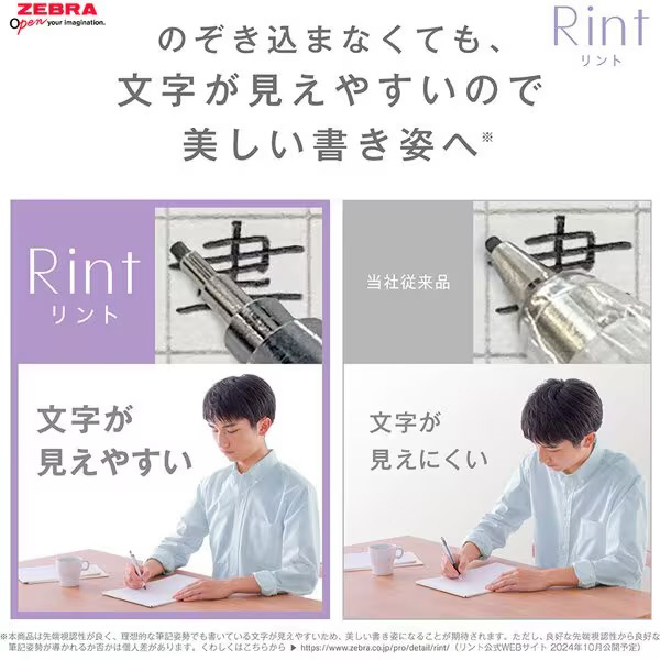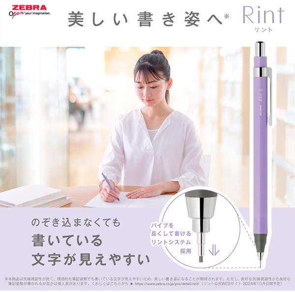 ゼブラは、のぞき込まなくても書いている文字が見えやすく「美しい書き姿」へ繋がる、シャープペン「リント」を開発しました。