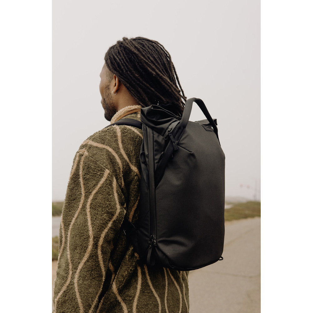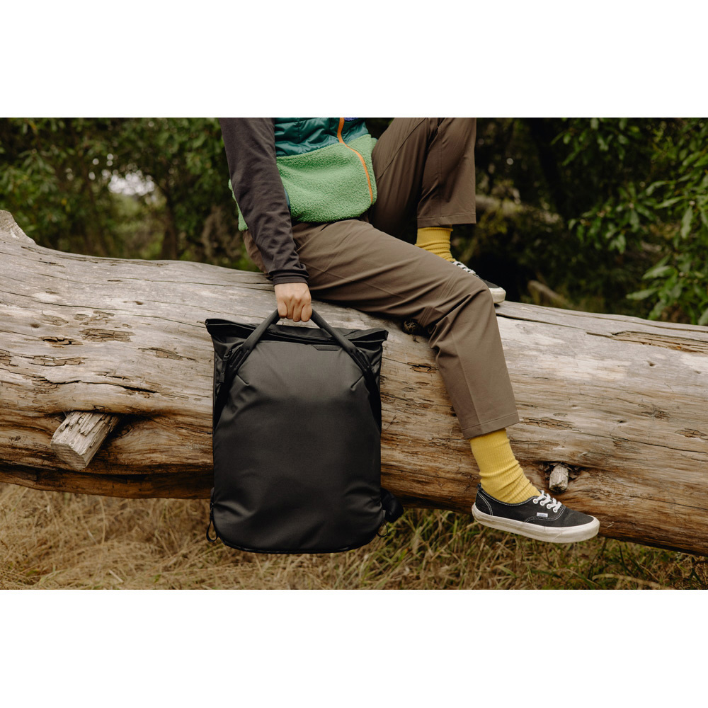 アクティブなバックパックとしても使用できる、持ち運びしやすいトートバッグ。
