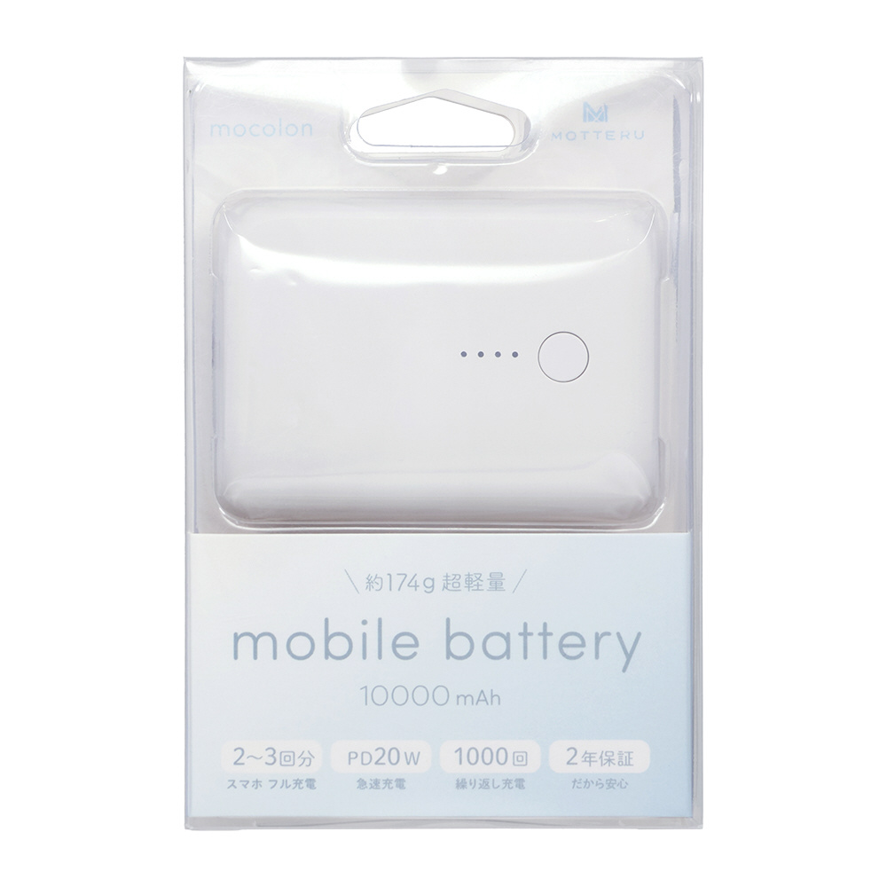 モバイルバッテリー10000mAh 国内最小最軽量モバイルバッテリー大容量10000mAh ホワイト MOT-MB10001Z-WH [USB Power Delivery対応 /2ポート]