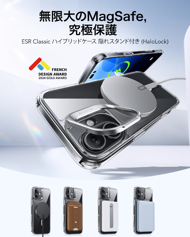 iPhone 16(6.1インチ)マグネット対応 スタンド付ハイブリッドケース ESR Clear ESRClassicHybridCasewithStashStand(HaloLock)
