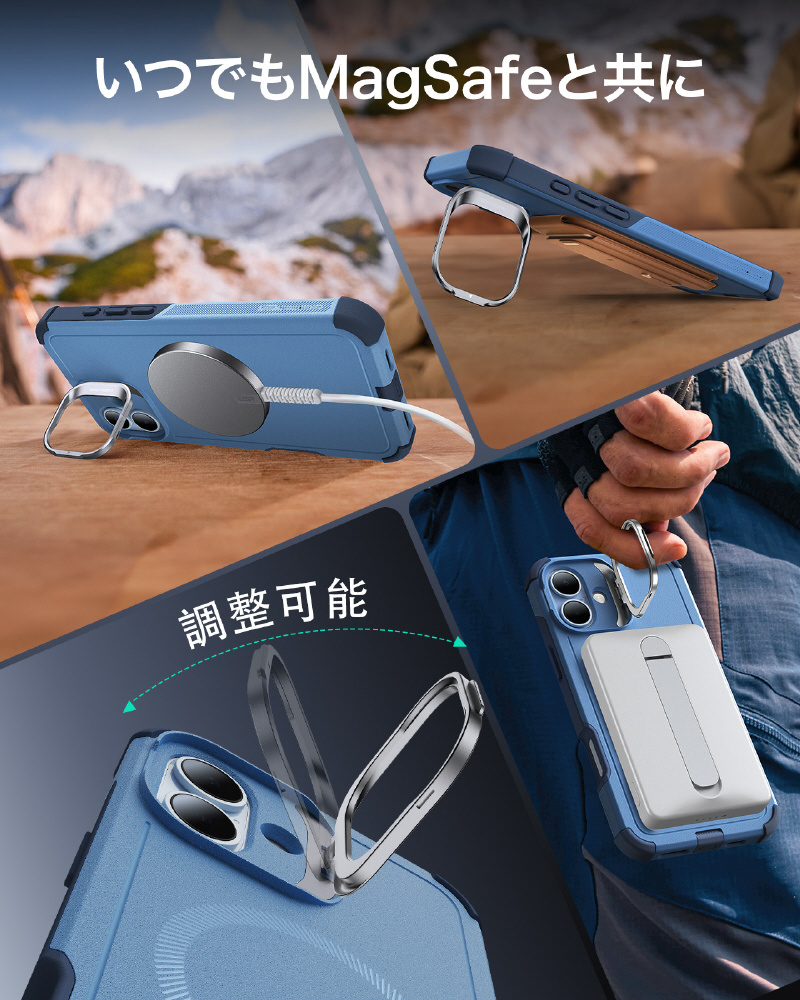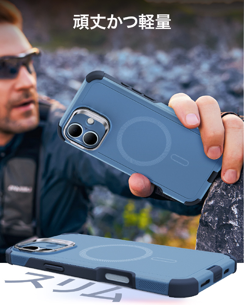 iPhone 16(6.1インチ) ミリタリーグレードスタンド付ハイブリッドケース ESR Light Blue CyberToughCasewithStashStand(HaloLock)iPhone16