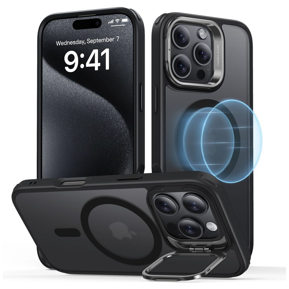 iPhone 16 Pro(6.3インチ)スタンド付ハイブリッドケース ESR Frosted Black ClassicHybridCaseStashStandforiPhone16Pro