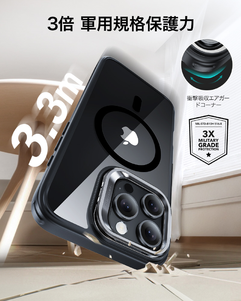 衝撃吸収エアガードコーナーと隆起したスクリーンエッジ、カメラガードの組み合わせにより、落下、衝突、傷から保護します。