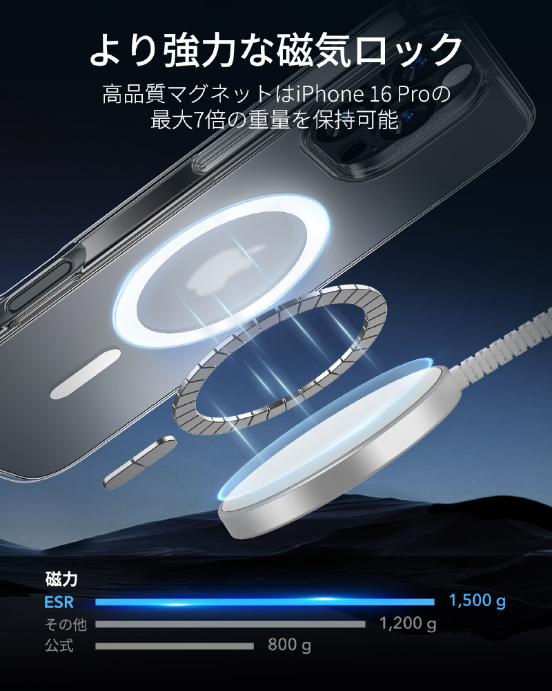 iPhone 16 Pro(6.3インチ)マグネット対応、ミリタリーグレードケース ESR Frosted Clear ESRClassicHybridCase(HaloLock)iPhone16Pro