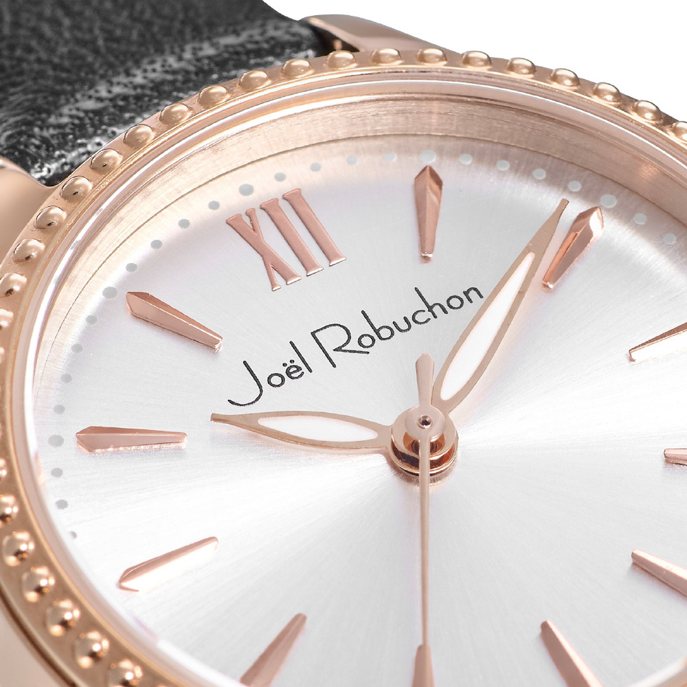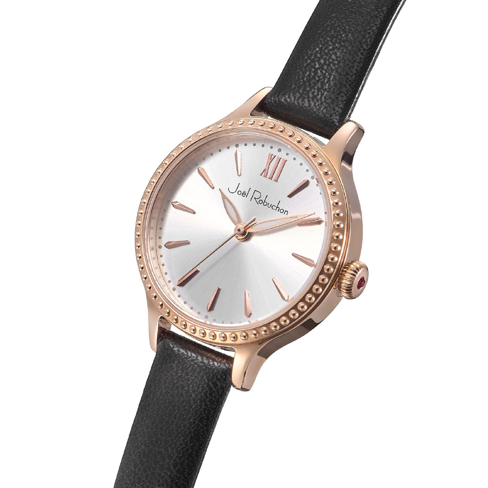 シンプルな文字盤の中央にJoel Robuchonのロゴを配置。シンプルで洗練されたブランドイメージをデザインに落とし込みました。