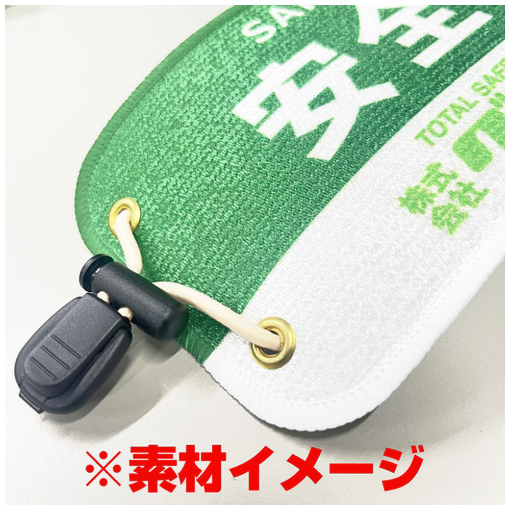 ・装着時に絞って余るゴムが邪魔にならない程度の長さですが、外した際には腕章本体が真っ直ぐな平面にはなりません。