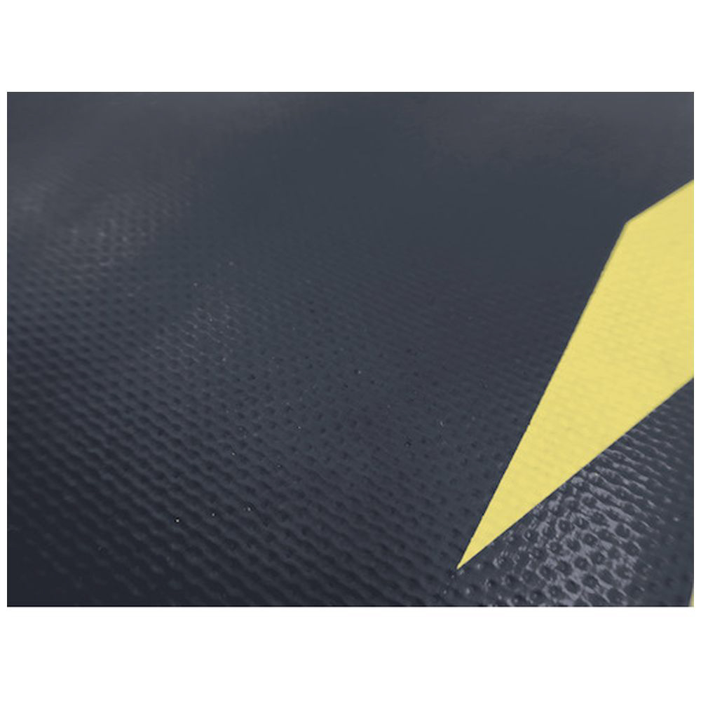 施工不要で配線を保護し、安全な通路を確保できます。裏面ゴムが滑り止め効果と耐久性を発揮します。丸洗いもOK、長く使っても色褪せない用途通路の安全確保、安全対策に。ケーブルへの躓きやひっかかりを防止。ケーブルを保護。ケーブル溝幅: 約100mmケーブル溝高さ: 約5mm表裏面ともに滑りにくい特殊合成ゴム(NBR)防炎適合品: E2160255防炎適合品: E2240090色: イエロー・ブラック幅(mm): 300長さ(m): 0.6長さ(mm): 中央にケーブル溝10mm幅あり厚さ(mm): 約5サイズ(mm)W: 600サイズ(mm)H: 300サイズ(mm)L: 5材質表面裏面: 特殊合成ゴム(NBR)質量・質量単位720g使用条件防炎認定品につき、大型施設や店舗、事務所や工場、フロントや屋外などどんな場所でも活躍します。注意事項製造工程上、表記サイズに対して±2%以内の誤差は許容範囲とさせて頂きます。