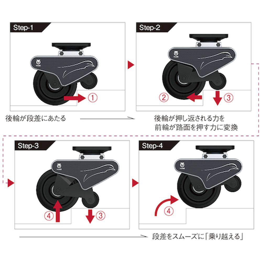 ユーエイ プレート式 自在 段差乗り越えキャスター グレーゴム 車輪径125mm Bタイプ BP型 取付寸法90×90(75×75)