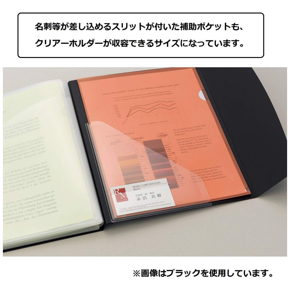 外向きオープンポケットで出し入れしやすく、クリアーホルダーごと入るホルダー用ブック。