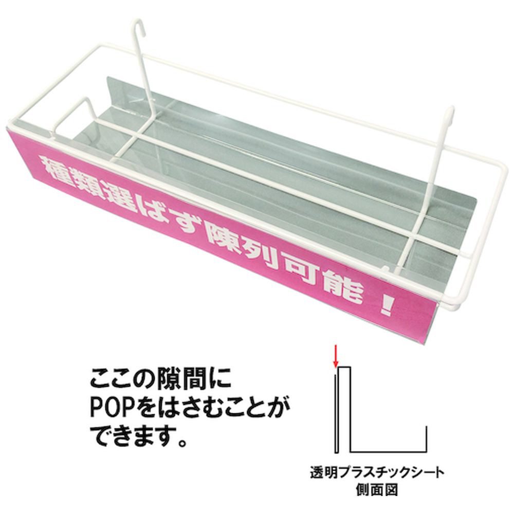 商品陳列可能なカゴにはPOPを差し込めるので、訴求効果を高められます。