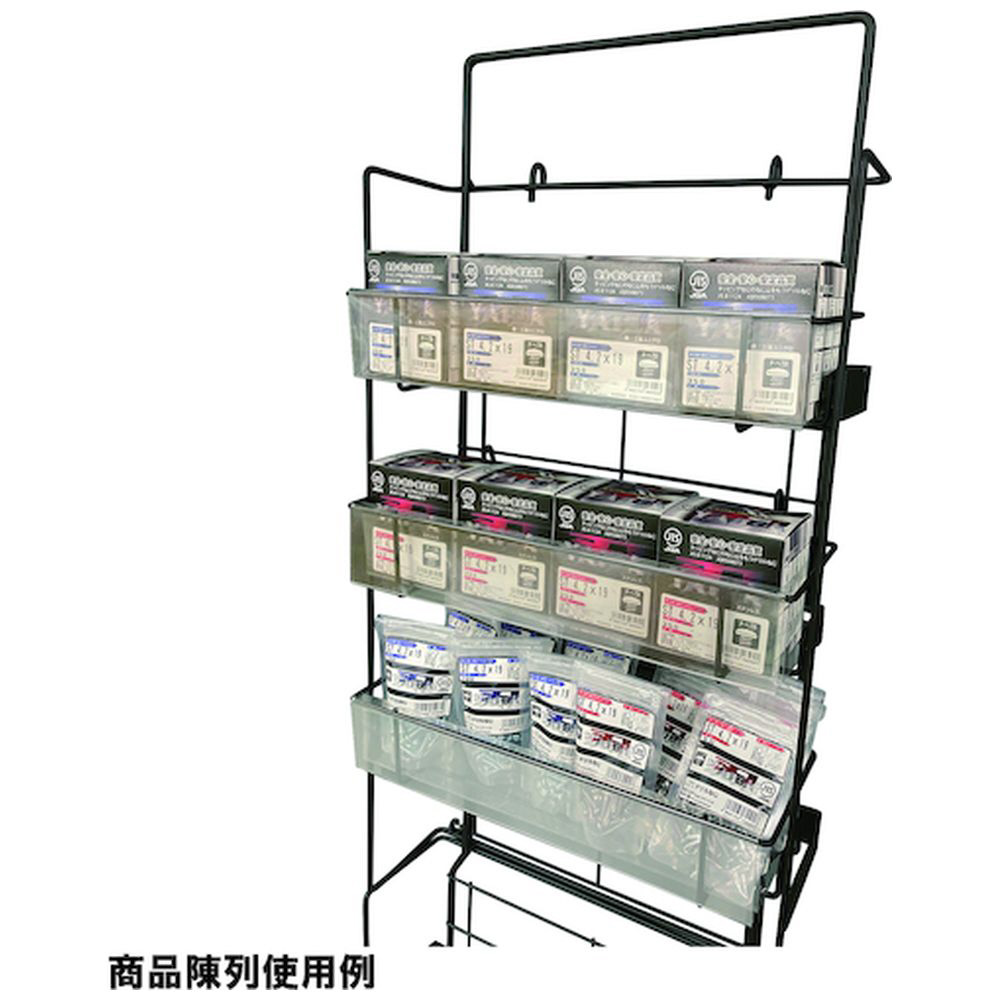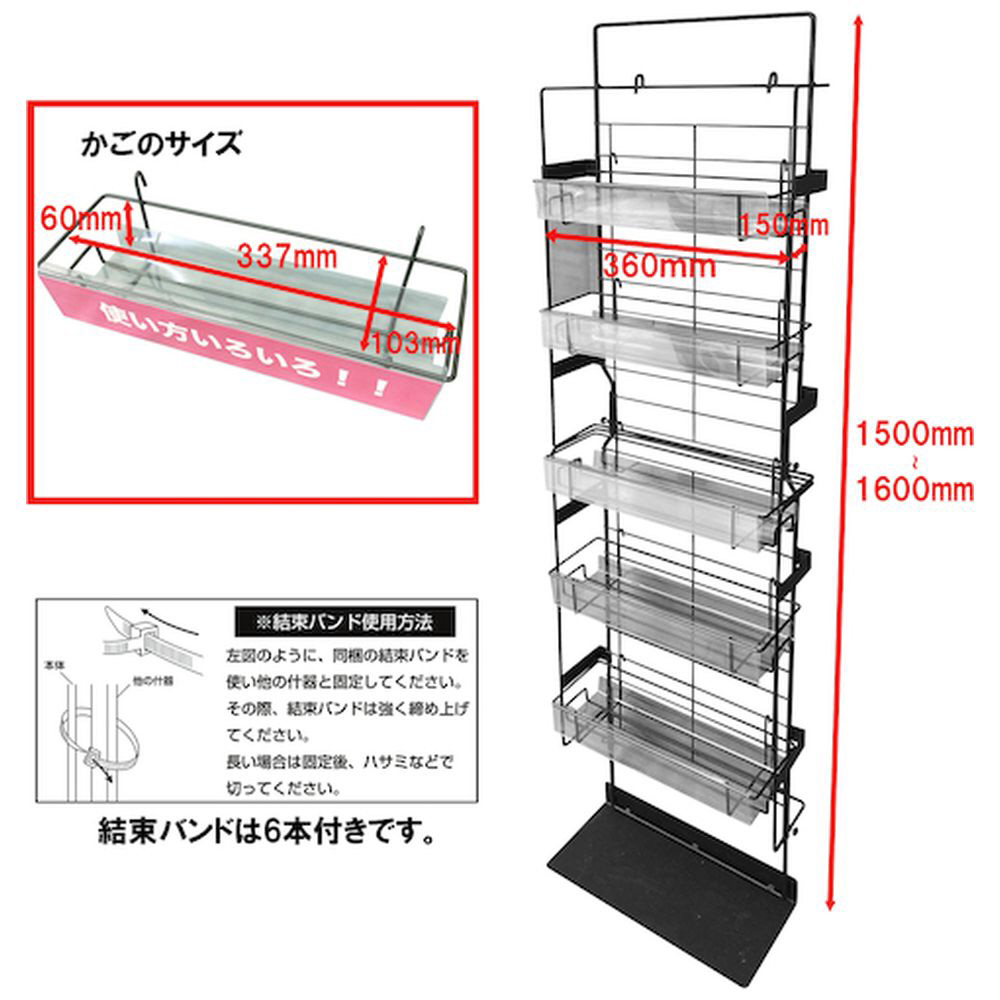陳列商品総重量は6kg未満に、設置の際は同梱の結束バンドで他の什器と固定してください。
