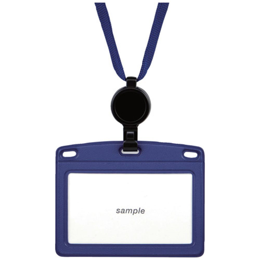 OP 吊り下げ名札 リール式 レザー調 ヨコ名刺 1枚 青
