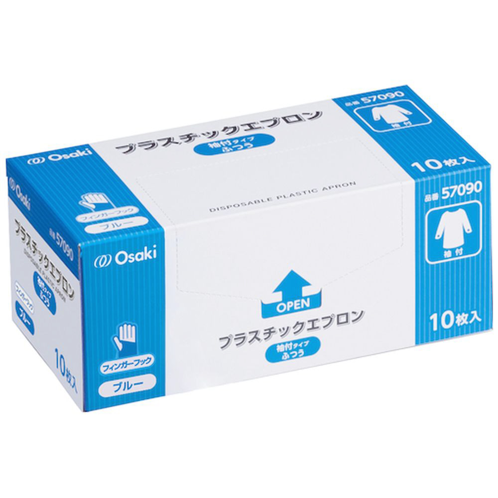 オオサキメディカル プラスチックエプロン 袖付 長袖 フィンガーフック ふつう ブルー 10枚入