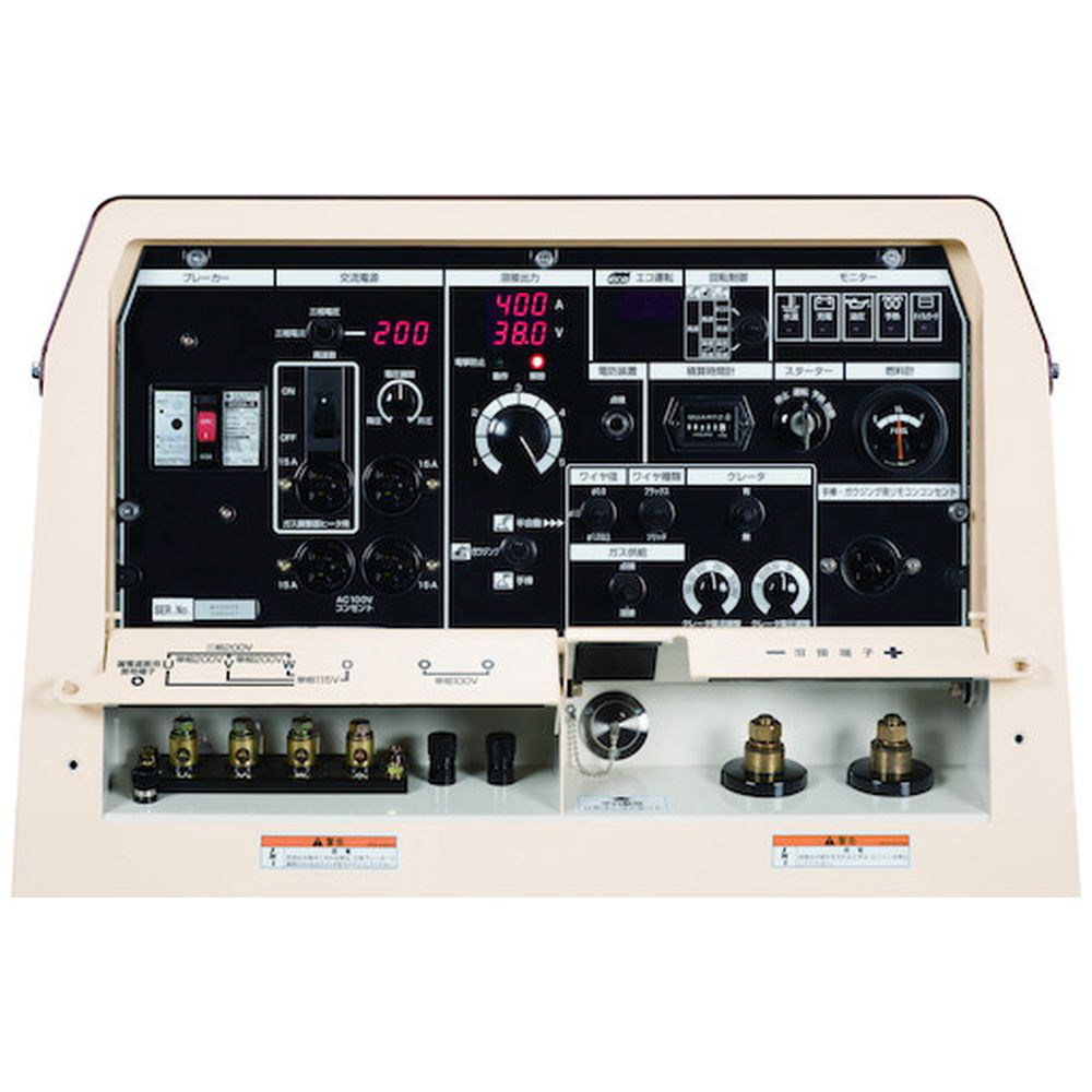 連続溶接が可能で、ガウジング作業に必要なエアコンプレッサー用の三相交流電源も搭載。