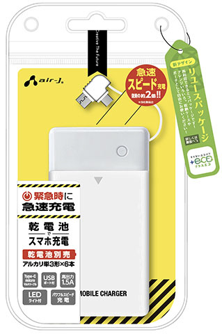 -充電速度従来の約2倍!ケーブル付乾電池式充電器-