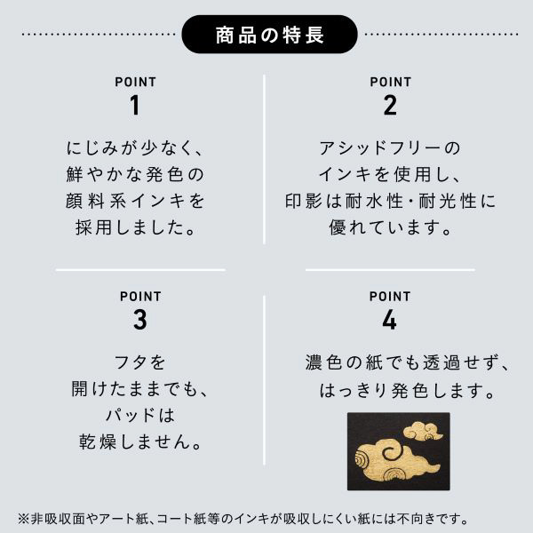 アシッドフリーのインキを使用し、印影は耐水性・耐光性に優れています