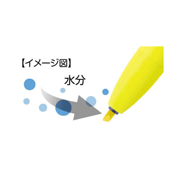 キャップがなくても乾かない(※)モイストキープインクなので、どこでも気軽に使えるノック式の蛍光ペンです。