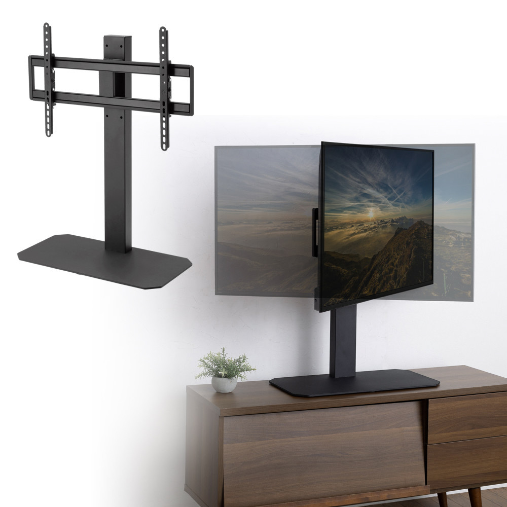 上下左右の角度調整と3段階の高さ変更が可能なスチール製卓上テレビスタンド。