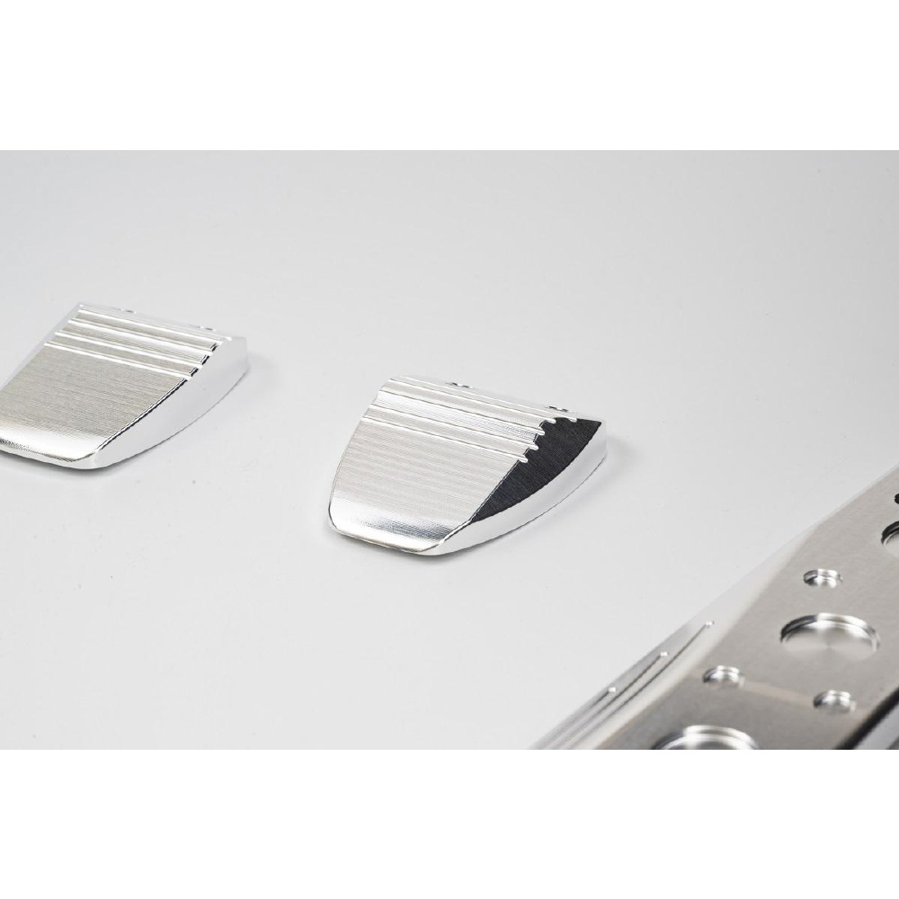 【 足裏のメカニズムと操作時の動きを追求したロードスター専用ブレーキペダル 】スポーツ走行テクニック(ヒールアンドトゥ)など、あらゆる操作方法とコントロール性を追求した結果、足裏にフィットする独特なペダル面形状を開発。コントロールがしやすく人間の感覚に合う絶妙なペダルフィーリング゛を実現しました。また固定方法は安全性を考慮し、カバータイプではなく純正ペダルパッド゛との交換タイプとしました。