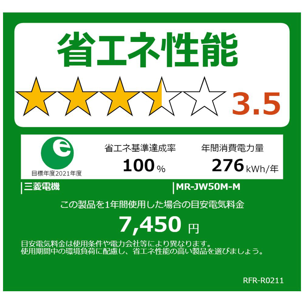 冷蔵庫 JWシリーズ ロイヤルウッド MR-JW50M-M [幅65cm /495L /6ドア /観音開きタイプ /2025年]
