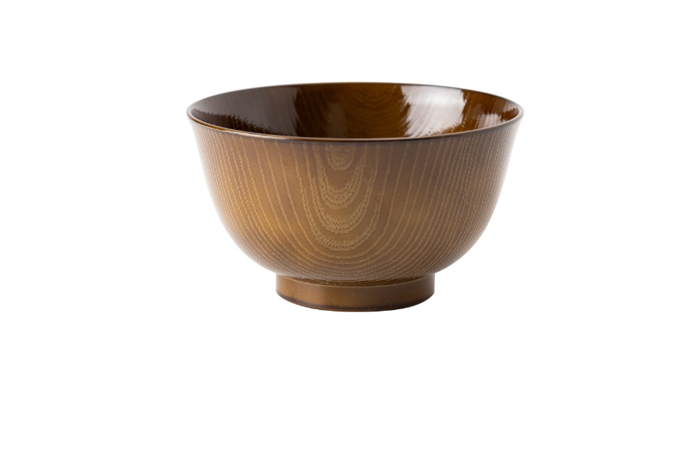 木目調の落ち着いた色合いの羽反型のお椀です。