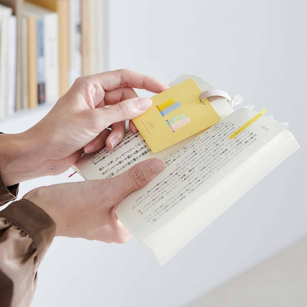 『ココフセンページ』は、 日々の読書や学習などのシーンでより快適に役立つ「持ち方」と「使い勝手のよさ」を考えて開発した、マーク用途に特化したフィルムふせんです。