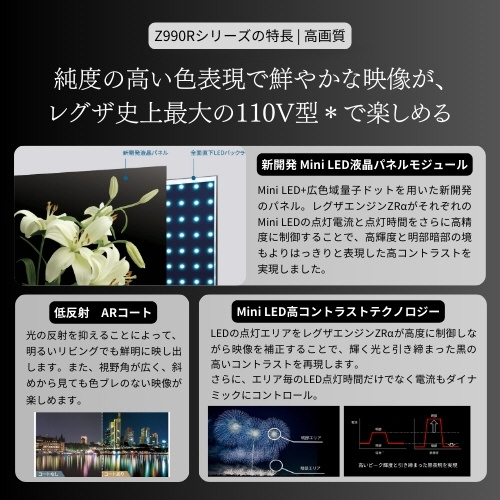 妥協なきレグザのクオリティがリビングを一新する。感動体験がここに。驚異の110V型、フラッグシップMini LED