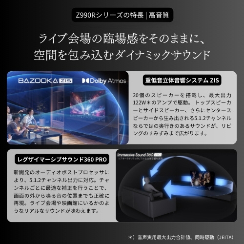 ◆ライブ会場や映画館のような臨場感・圧倒的な没入感【レグザイマーシブサウンド360 PRO】