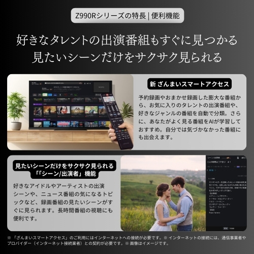 さらに膨大な過去番組から、あなたにあった番組をピックアップしておすすめするざんまいスマートアクセスで、新たな視聴体験を。