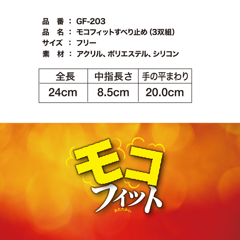 裏起毛を使用したフィット感のある滑り止め手袋。3双組