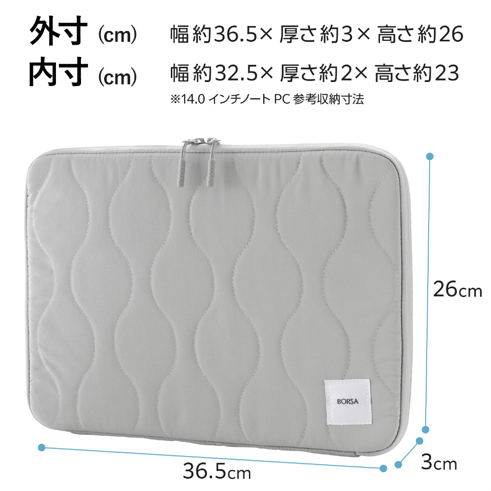 ノートパソコン対応 [〜14.0インチ] キルティングインナーケース オニオンステッチ グレー BM-IBQTO14GY