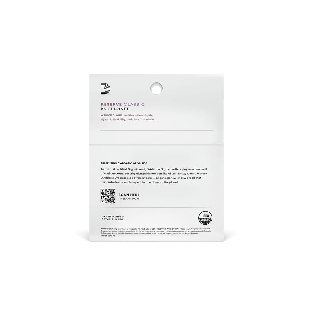 ダダリオ リード Bbクラリネット用 USDAオーガニック認証取得済 RESERVE CLASSIC ODCT0330 [硬さ:3.0] 3枚入り