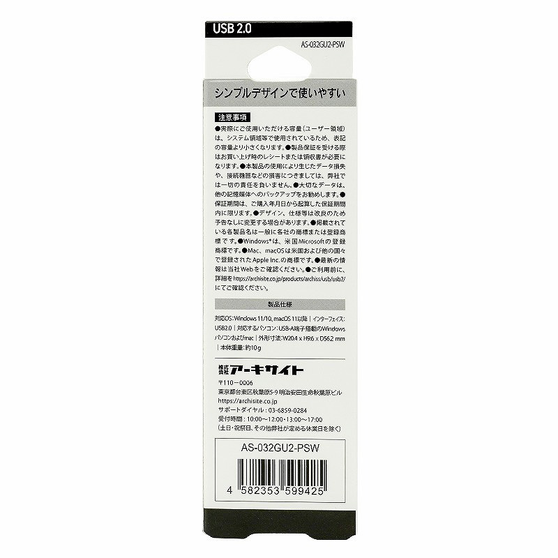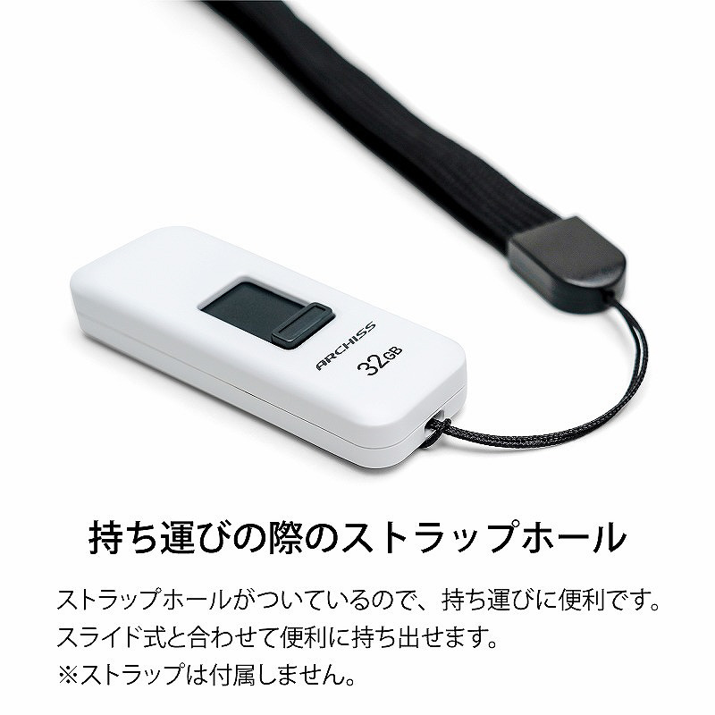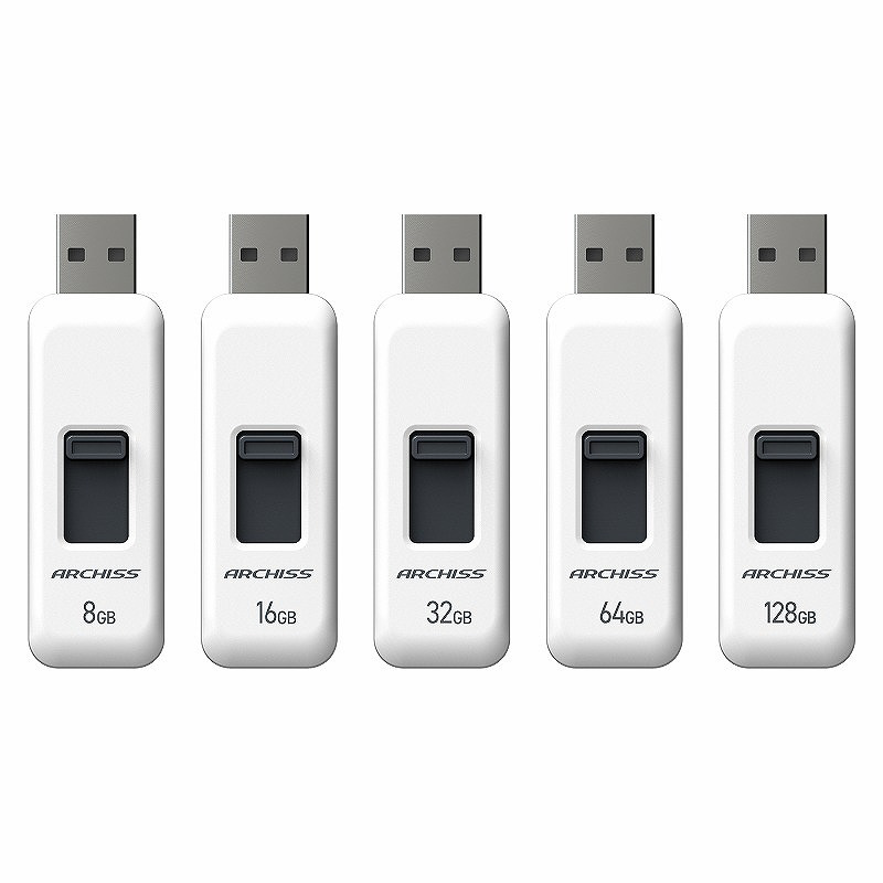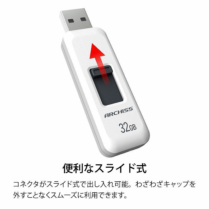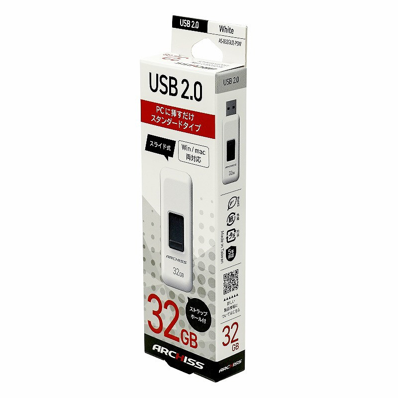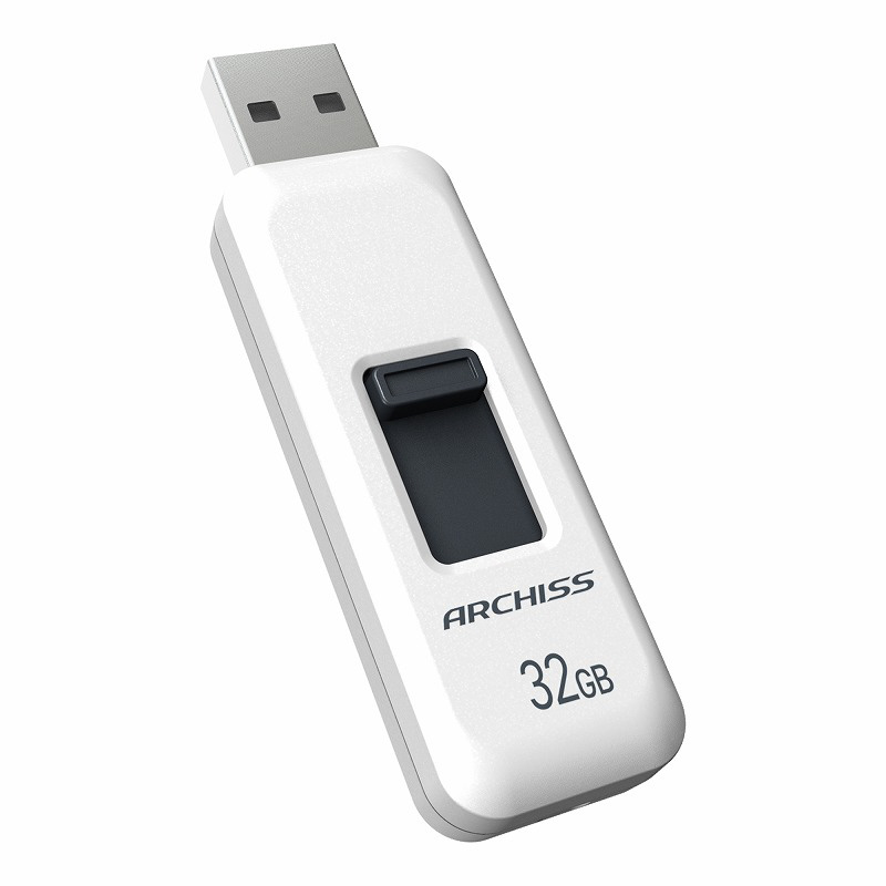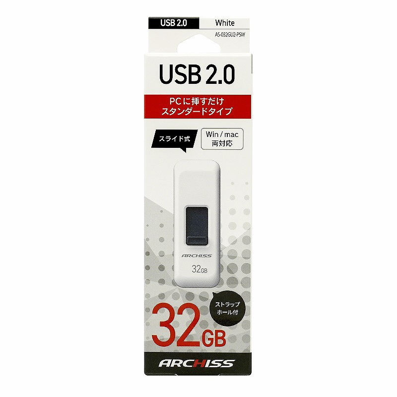 USBメモリ ARCHISS USB2.0(Mac/Windows11対応) ホワイト AS-032GU2-PSW [32GB /USB TypeA /USB2.0 /スライド式]
