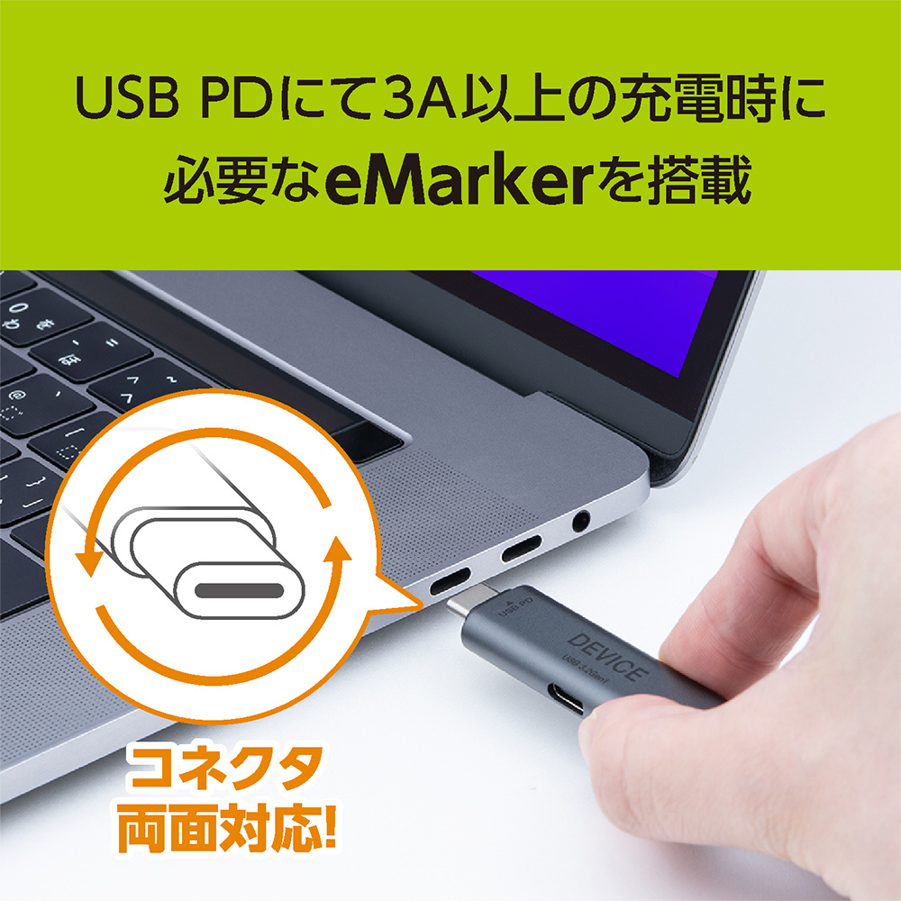 USB PDにて3A以上の充電時に必要なeMarkerを搭載しています。