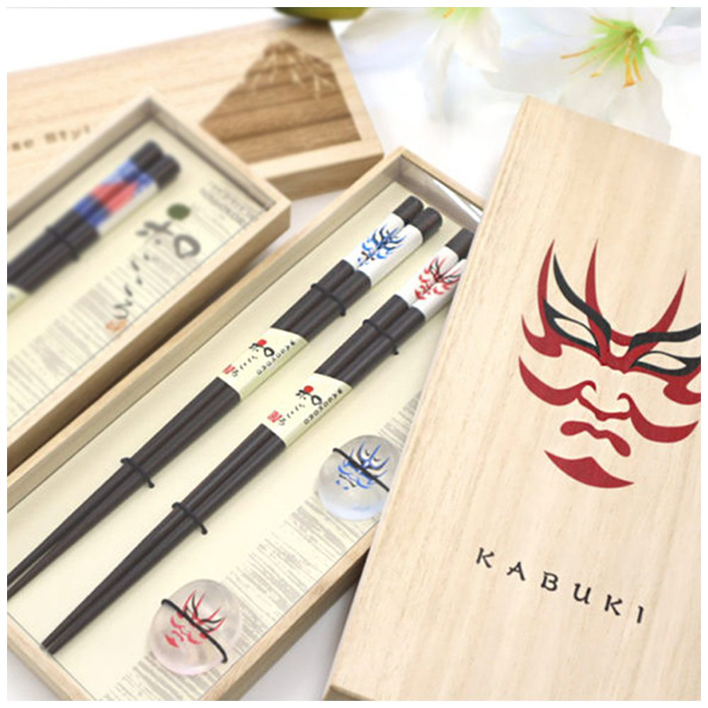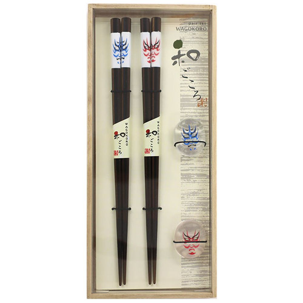 箸&箸置きセット 桐箱入 箸 約23cm 歌舞伎 隈取 54958