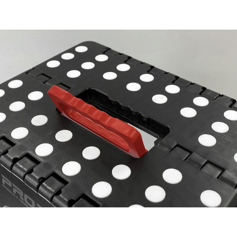 後ちょっとに手が届くセノ・ビー。高さ32cmアップ。滑り止めラバー付なので滑りにくく、床なども保護してくれるのでフローリングで使用も可能。滑らないのでお風呂でもお使いいただけます。持ち手を引き上げるだけで、簡単にコンパクトにたためるので隙間に収納できます。持ち手が動くことで、畳みやすく手を挟むこともありません。【仕様】耐荷重:100kg 天板サイズ:横29×縦22cm 折りたたみ時:幅6cm