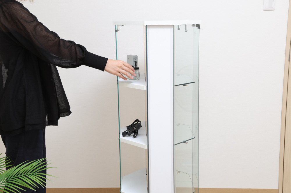 お気に入りのコレクションを様々な角度から楽しめる背面ミラー仕様です。通常のミラーより2〜3倍強度アップした強化ミラーを使用しています。