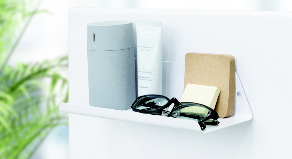 フラットで置きやすく、収納物が落ちにくい前ガード付きです。